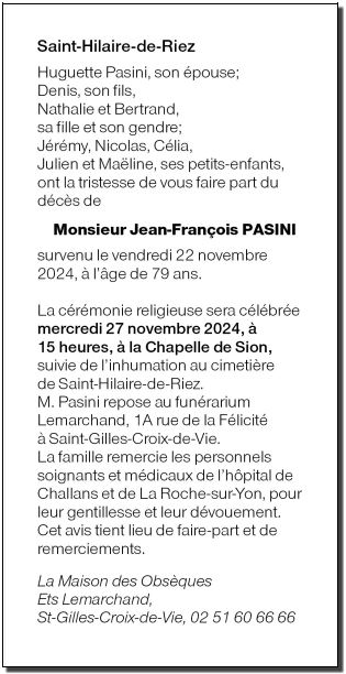 Décédé à La Roche-sur-Yon (85000, France) le vendredi 22 novembre 2024 à l'âge de 79 ans