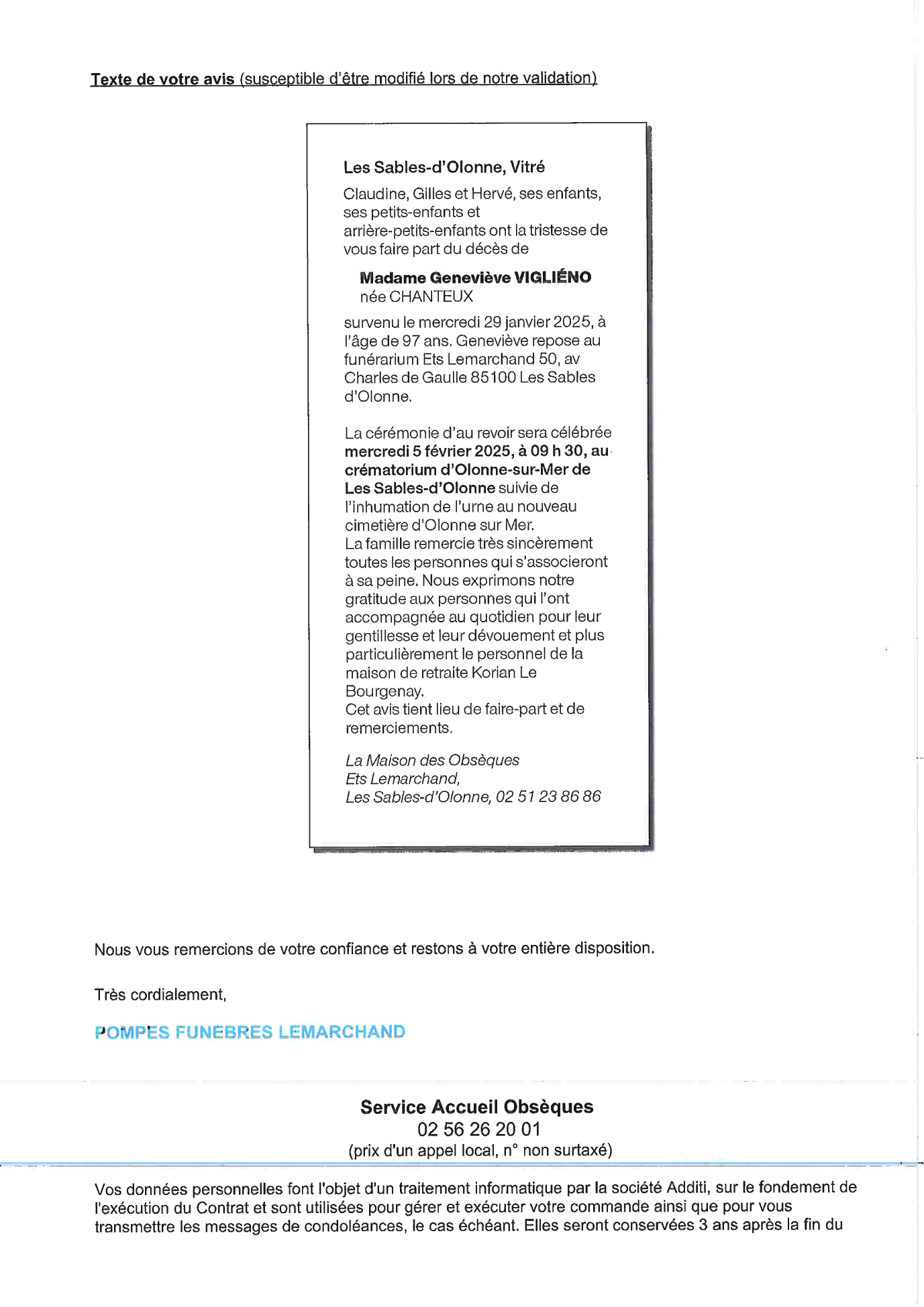 Née à Vitré (35500, France) le lundi 28 novembre 1927