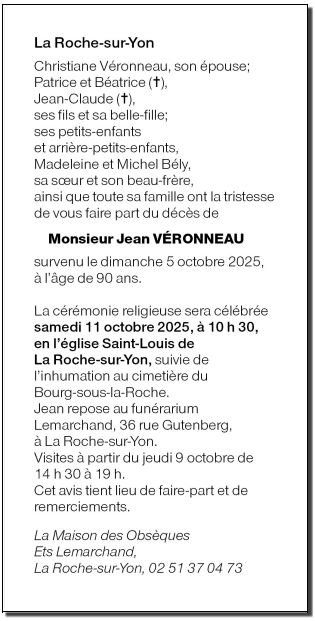 Décédé à La Roche-sur-Yon (85000, France) le dimanche 5 octobre 2025 à l'âge de 90 ans