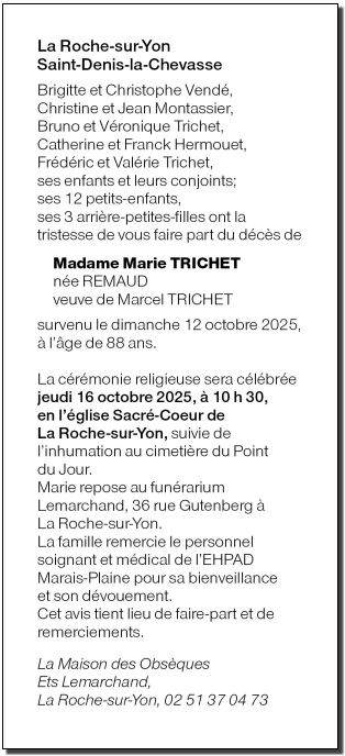 Veuve de Monsieur Marcel TRICHET