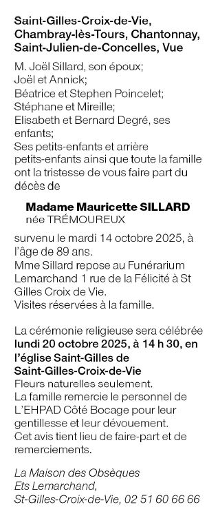 Madame Mauricette SILLARD née TRÉMOUREUX