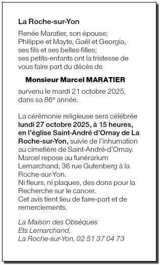 Décédé à La Roche-sur-Yon (85000, France) le mardi 21 octobre 2025 à l'âge de 85 ans