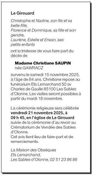 Madame Christiane SAUPIN née GAWRACZ
