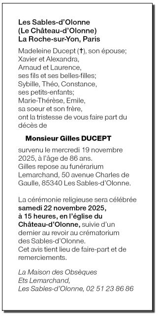 le mercredi 19 novembre 2025 à l'âge de 86 ans