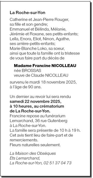 Madame Francine NICOLLEAU née BROSSAS