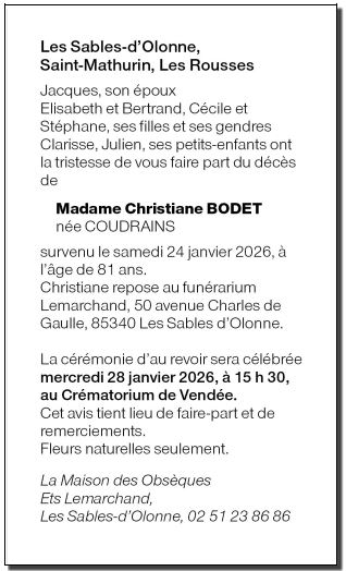 le samedi 24 janvier 2026 à l'âge de 81 ans