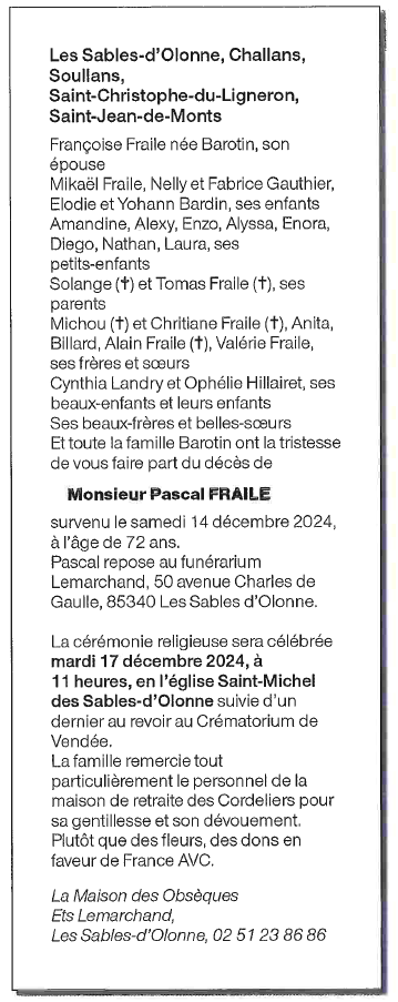 le samedi 14 décembre 2024 à l'âge de 72 ans