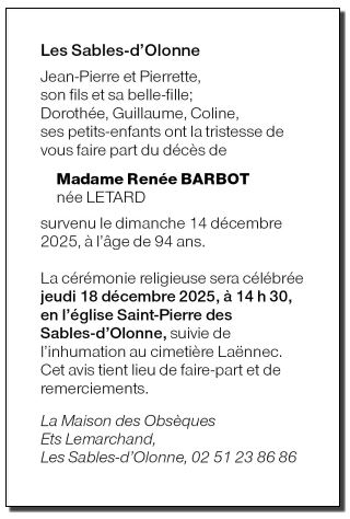 le dimanche 14 décembre 2025 à l'âge de 94 ans