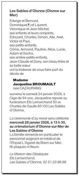 Veuve de Monsieur Michel BROUMAULT