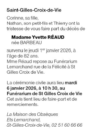 Décédée à Saint-Gilles-Croix-de-Vie