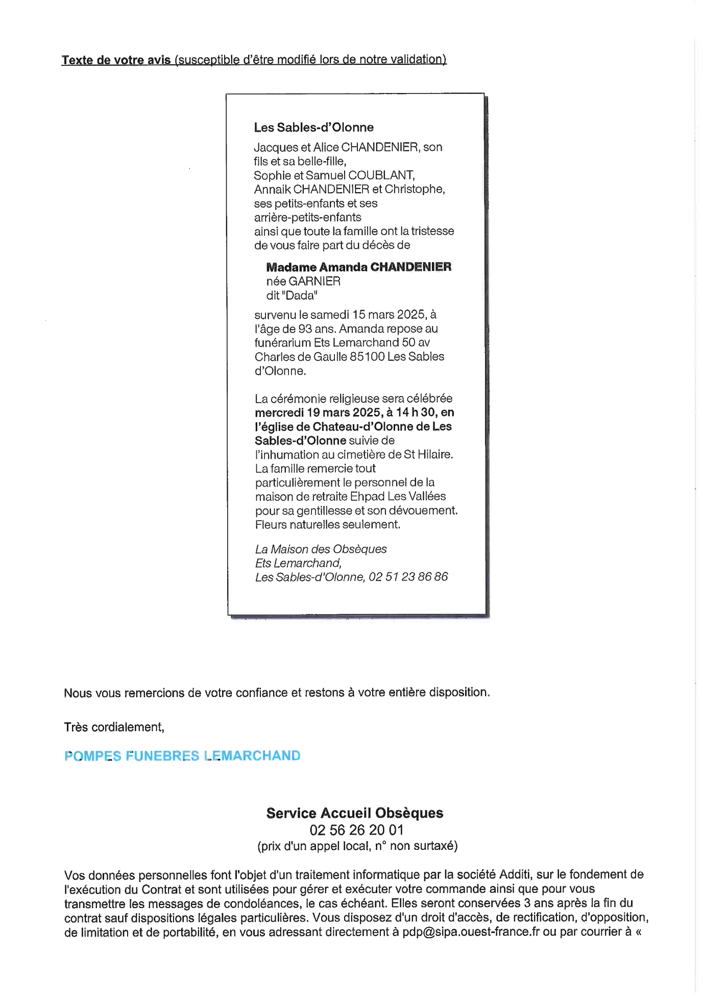 Annonce nécrologique