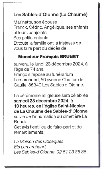 le lundi 23 décembre 2024 à l'âge de 74 ans