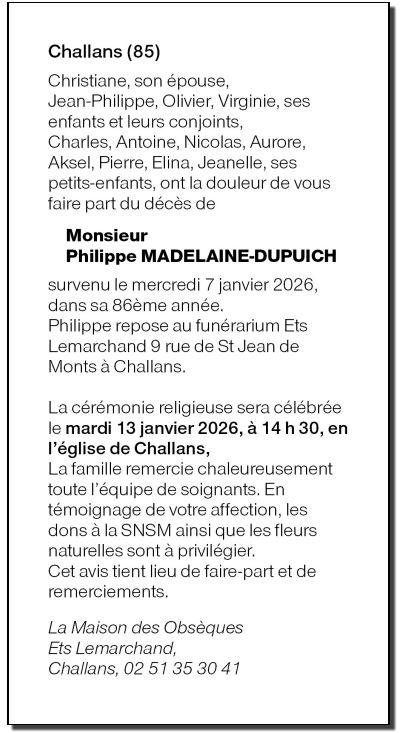Epoux de Madame Marie MADELAINE-DUPUICH